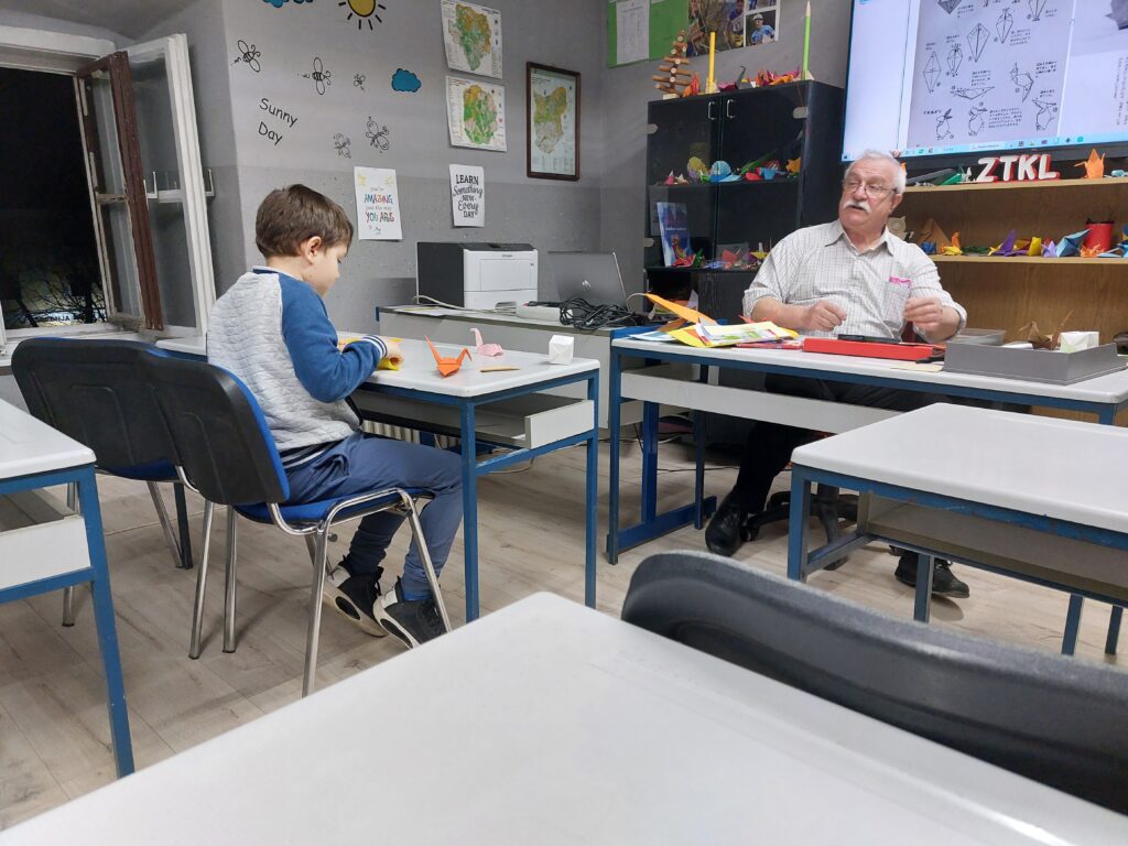 Koristimo veliki ekran za projiciranje svih modela, a učitelj nam još i pokazuje korake svijanja po redu tako da svi sve možemo napraviti istovremeno.